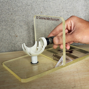 The drive wheel and the driven wheel (Geneva) have been modeled in SolidWorks & then 3D printed using the Rapid Prototyping machine (RPT).